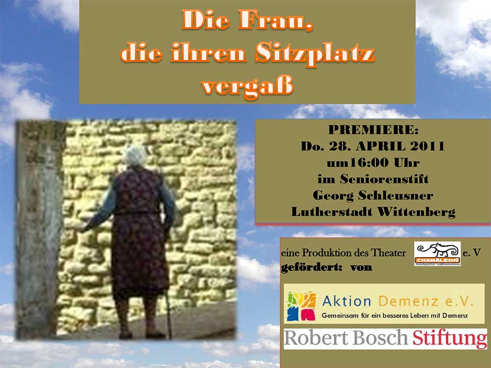 Grundgedanke ist, die fünf alten Damen zu Wort kommen zu lassen. theatralisch ergänzt wird das Ganze durch Kinder im Alter zwischen 6 und 12 Jahren des TJC „Chamäleon“, die mit Gedichten und Geschichten aus mehreren Jahrhunderten dieses Phänomen ‚Demenz‘ kommentieren und theatralisch illustrieren.