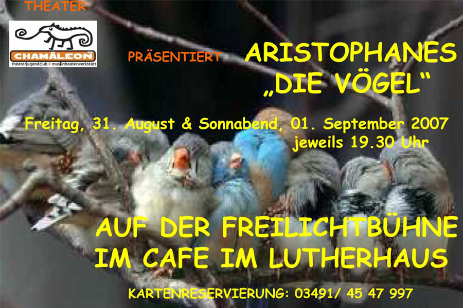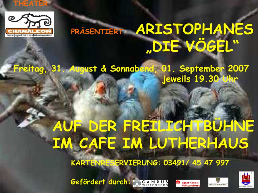 Es ist wichtig, gerade da dieses Thema Schulstoff ist, die Gesetzmäßigkeiten des Ursprungs des abendländischen Theaters in ihrer Basis und Ausführung kennen zu lernen. Die Tragödien eines Euripides und Aristoteles sind für Kinder und Jugendliche zu schwer. Da “Diee Vögel “ in ihrem Symbolismus aktuelle Interpretationen zulassen, scheint es ein Idealfeld für den TJC zu sein. Außerdem ist die Verquickung von Kunst und Politik ein guter Ausgangspunkt, sich mit der Zeit an sich zu beschäftigen.