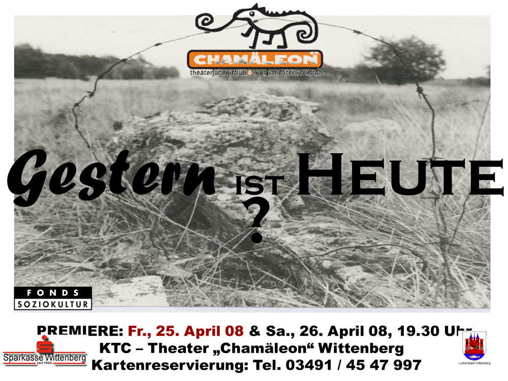 Das Projekt, gefördert von ”SOZIOFONDS KULTUR “ der Bundeskultur-Stiftung, ist die erste Zusammenarbeit zwischen dem Theaterjugendclub und dem Wittenberger Seniorentheater. Das Thema des Abends, eine Mischung zwischen Lesung und Theater, soll der Umgang mit Geschichte sein. Zeitzeugen berichten aus der Nazizeit, 75 Jahre Machtergreifung. Jugendliche spielen in kleinen Szenen. Das Un-Phänomen. Geschichte soll greifbar werden, sowohl wie sie sich einst zeigte, wie auch die Rezipienz in der heutigen Zeit. Wie stellt sich der Neo-Nationalsozialismus dar? Was wird aus der Geschichte werden, wenn die noch lebenden Zeitzeugen nicht mehr sein werden? Was hat sich geändert?