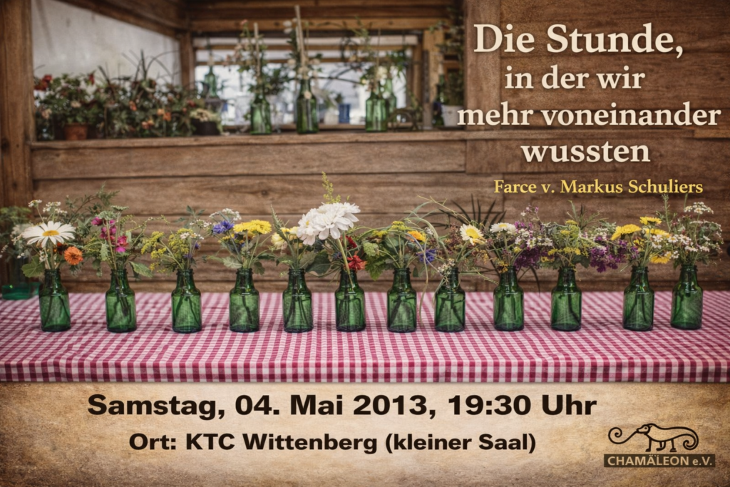 In Kooperation mit Kindern und Jugendlichen des TJC „Chamäleon“ e.V. ist hier der Versuch einer „theatralischen Symbiose“ zwischen Integration, Sprachkenntnis und Kunst unternommen worden.