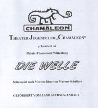 Der Aktualitätsbezug ist immanent, diese Novelle ist Schulstoff und bewegt somit viele Kinder und Jugendliche. Hier ist auch unser Ansatzpunkt zu sehen. Ein Schwerpunkt unserer Arbeit mit Kindern und Jugendlichen ist es, die Gefahren eines blinden Vertrauens auf Ideologien, egal welcher Couleur sie seien mögen, aufzuzeigen und ein natürliches Mißtrauen gegenüber faschistischem Gedankengut bei den Kindern und Jugendlichen zu wecken. Unser Projekt „Der Tod ist ein Meister aus Deutschland“ im ehemaligen KZ-Lichtenburg war der direkte Umgang mit der Thematik. „Die Welle“ soll ein weiterer Versuch sein zu zeigen, daß „der Schoß immer noch fruchtbar ist“, wie B.Brecht es sagte. Die authentische Besetzung der Schüler und Schülerinnen durch Kinder und Jugendliche läßt bei dem Zuschauer nur eine direkte Adaption zu, die den Eindruck vermittelt, Zeuge einer ent-individualisierten Gesellschaft, der Generation von morgen, zu werden. Wir alle haben unserer Zukunft gegenüber die Verantwortung, es nie wieder zu zulassen.