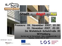 Das Projekt ist ein Theaterprojekt, welches in 5 leer stehenden Wohnungen in der Lerchenbergsiedlung - Wohnblock Schulstraße 30 in Wittenberg - stattfindet. Gezeigt werden 5 Szenen, von Kindern und Jugendlichen aus dem hiesigen Wohngebiet und Umgebung gespielt, die sich mit den Vorkommnissen in Halberstadt auseinandersetzen. Vor drei Monaten sind Theaterensemble - Mitglieder von Neo-Nazis brutal zusammen geschlagen worden. Wir möchten die Sichtweisen von 5 Kindern und Jugendlichen szenisch darstellen, deren Eltern in direktem Bezug zu dieser Tat stehen.
