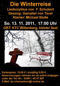 Wilhelm Müller (*1794 in Dessau, +1827 in Dessau), der in vielen seiner übrigen Texte große Sympathien für die Befreiungskriege der Griechen gegen die Türken zum Ausdruck brachte, und deswegen auch „Griechen-Müller“ genannt wurde, lieferte Franz Schubert (*1797 in Wien, +1828 in Wien) mit seinen 1822/23 verfassten, mal etwas blumigen, mal ironischen, mal knallharten, aber immer äußerst tief empfundenen Gedichten der „Winterreise“ eine Vorlage, die den Komponisten zu einem einzigartigen musikalischen Höhenflug animierte. Schuberts im Jahre 1827 entstandene Musik zu diesem Zyklus kennt keine Grenzen an Innigkeit und Dramatik. Genauso meisterlich werden aber auch Zurückhaltung und Klarheit eingesetzt. Jedes der 24 Lieder ist ein Mikrokosmos, aber als Makrokosmos „Winterreise“ untrennbar miteinander verbunden.